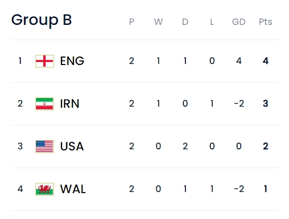 形勢:英格蘭平局即可出線,伊朗、美國誰贏誰確保晉級,威爾士取勝才有機會。