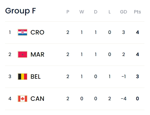 形勢:克羅地亞、摩洛哥平局即出線,比利時需要取勝才穩。