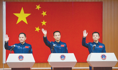 費俊龍:目前我們乘組是執行任務乘組當中平均年齡最大的,我57歲,鄧清明56歲,張陸46歲。年齡雖然最大,但我們的飛行本領一直保持在青春狀態。我們不忘初心、牢記使命,經過紮實、艱苦的地面訓練,我們的心理更加穩定,配合也更加默契。相信在廣大科技人員的密切配合下,我們一定能夠行穩致遠,圓滿完成神舟十五號載人飛行任務。