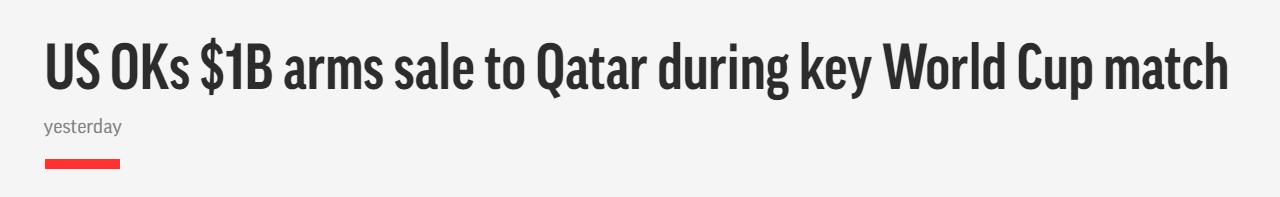 美媒:美伊小組賽下半場開賽之際,美國批准對卡塔爾10億美元軍售