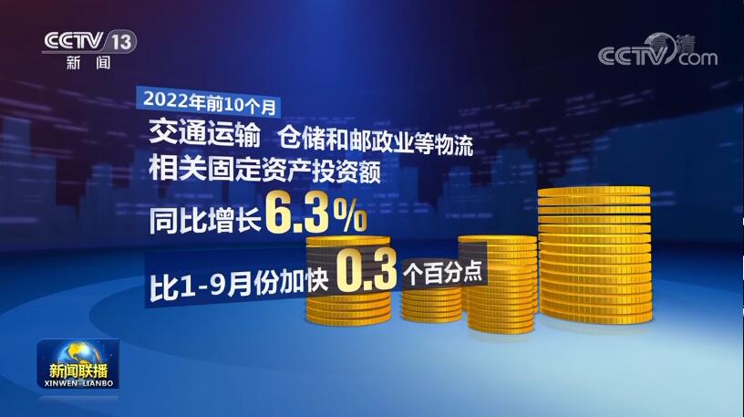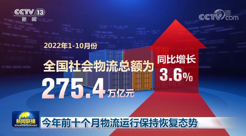 央視網消息 (新聞聯播):中國物流與採購聯合會今天(11月29日)公佈的數據顯示,今年1—10月份物流需求呈現逐步恢復態勢,保通保暢政策效果不斷顯現,物流對經濟的支撐作用依然較為明顯。