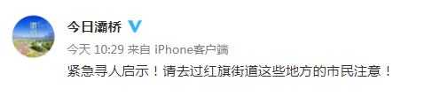 西安灞橋區發佈緊急尋人啓示