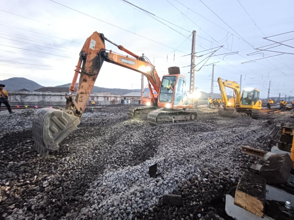 “大夥聽我口令!一二、一二……”27日清晨,在沈大鐵路線得利寺站內機械轟鳴、人聲鼎沸,中國鐵路瀋陽局集團有限公司大連工務段施工隊在-5℃的氣温下抓緊施工,對線路動態不穩定路段進行搶修,為冬季鐵路運輸安全提供保障。