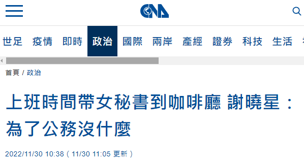 報道稱,有媒體10月曾爆料,謝曉星涉職場性騷擾及言語霸凌下屬,更利用上班時間帶女下屬搭公務車到咖啡廳以視頻方式兼職授課。台“行政院”成立專案小組調查。