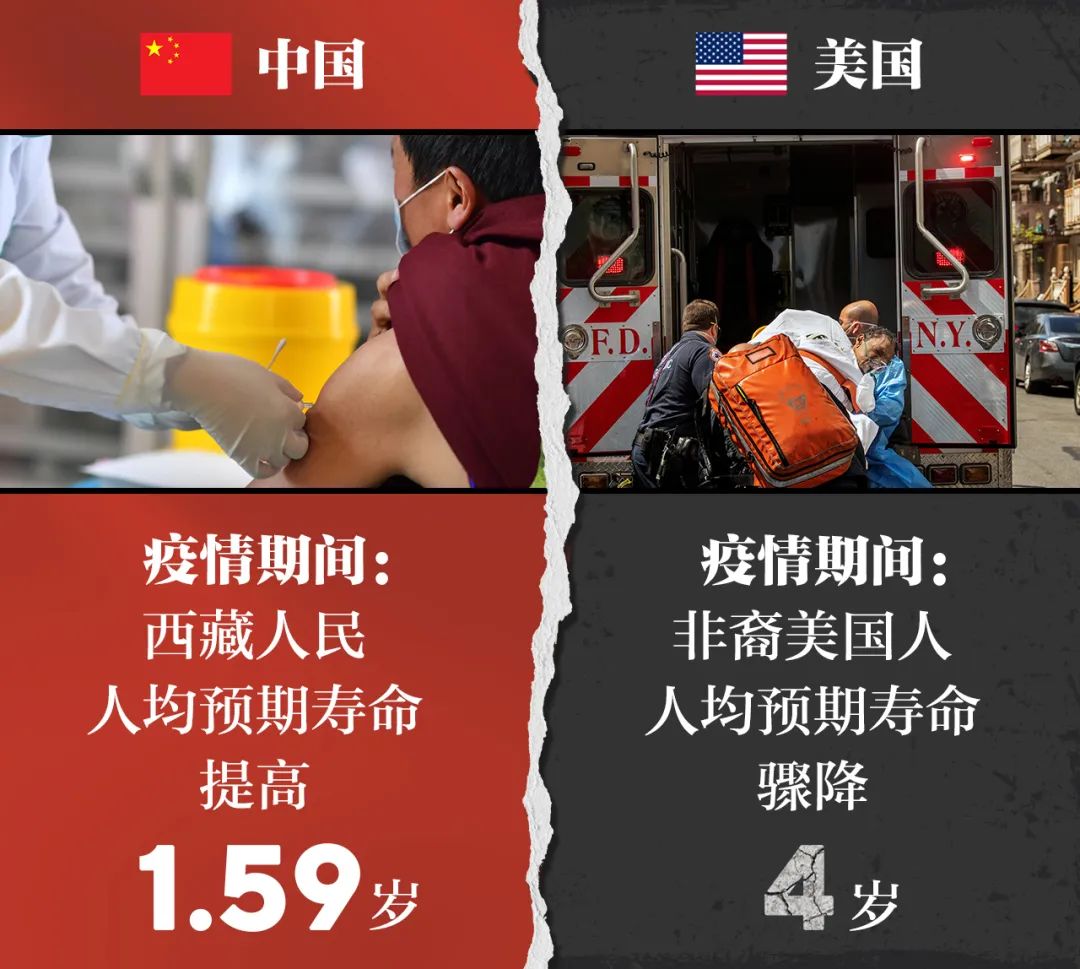 美國人均壽命因疫情呈歷史性縮短趨勢。 美國疾控中心公佈報告顯示,美國2019年人均預期壽命為78歲10個月,2020年縮短至77歲,2021年進一步減至76歲1個月。這是100年來美國人均預期壽命首次出現連續兩年下降。布魯金斯學會認為,從人均預期壽命看,新冠疫情已經使得美國25年來在醫療創新和生活水平提高方面取得的進步付諸東流。