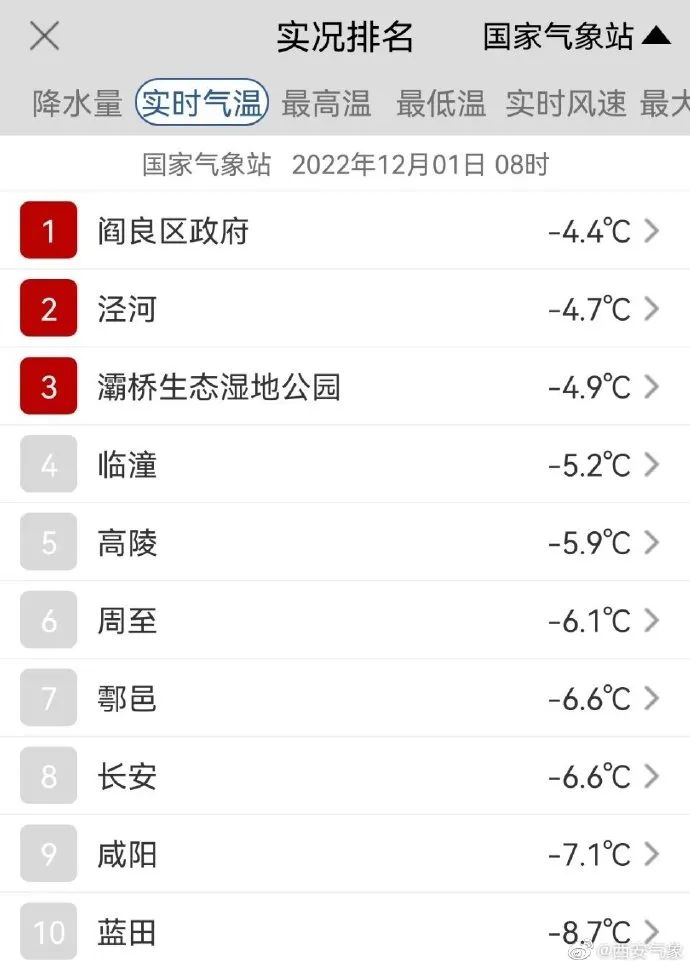 上午8時,西安市涇河國家基本氣象站即時氣温為-4.7℃,藍田-8.7℃。根據西安市氣象台預報,未來48小時,西安市平原地區最低氣温持續偏低3~5℃,秦嶺山區偏低5~7℃。