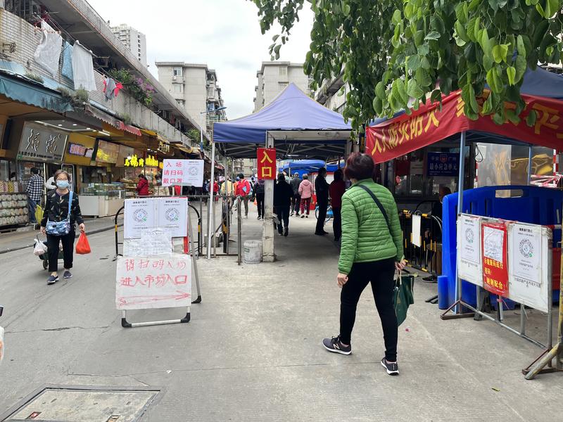 在海珠區沙園市場入口處,記者看見陸續有市民掃碼進入。 ↓