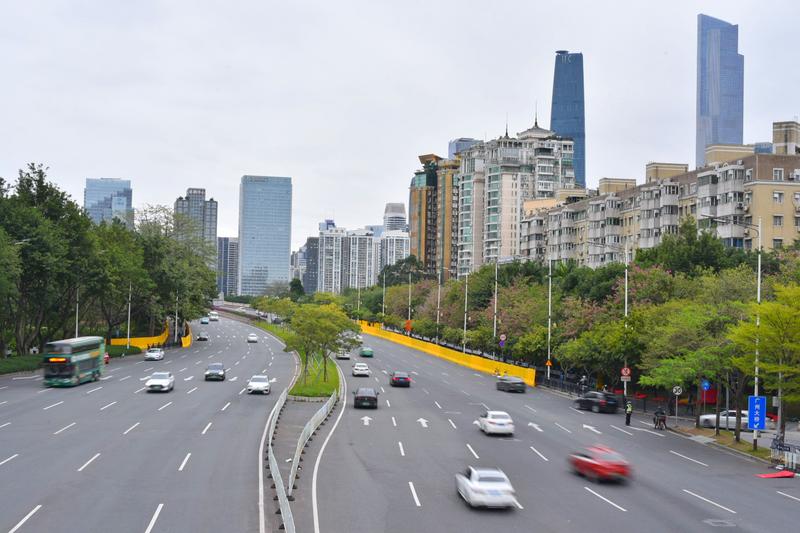 交通管控解除後的首個早高峯,廣州大橋南側雙向交通通暢。↓