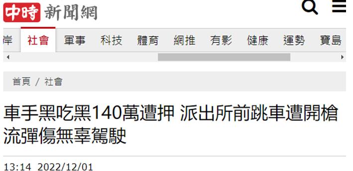 【環球網報道】據中時新聞網等台媒12月1日報道,台灣一名莊姓男子私吞詐騙團伙140萬元(新台幣,下同),今年3月被該團伙內一名劉姓男子及其兩個朋友開車綁架,莊姓男子當時在高雄某派出所前跳車逃跑,劉姓男子隨即對其開槍阻止,過程中誤擊正巧路過的貨車玻璃,造成貨車駕駛員眼睛受傷。高雄地方法院經審理後,依殺人未遂等罪判處劉姓男子有期徒刑7年8個月,可上訴。