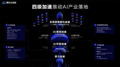 今年,騰訊雲智能戰略全新升級,將基於騰訊全棧技術能力,通過四級加速框架,打造低成本、低門檻、高可用的AI產品和解決方案。首先,通過自研AI芯片,加速算力效能,釋放動力引擎。其次,通過多元的AI開發平台,加速開發進程、提高開發能力、提升開發效率。再次,通過標準化的產品、紮實的解決方案、完善的夥伴生態,加速AI在產業中的落地。最後,共同探索智能化方法論,加速AI在行業中的普惠應用。