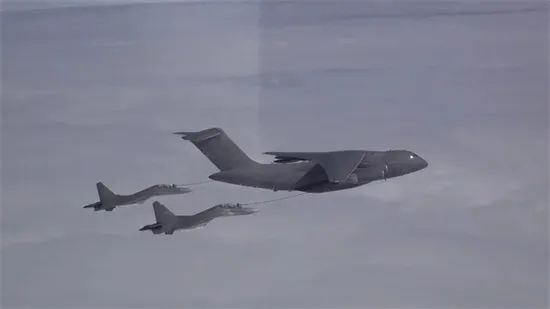 中國空軍派出的轟-6K轟炸機和運油-20空中加油機從空軍多個機場起飛,運油-20為執行此次聯合巡航任務的兩架殲-16戰機加油 。
