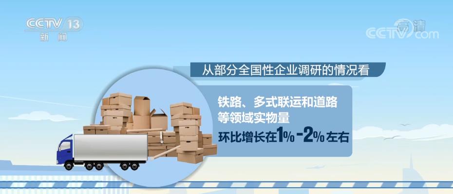總體來看,11月物流行業繼續保持較強供給能力,物流實物量增長穩定。從部分全國性企業調研的情況看,鐵路、多式聯運和道路等領域實物量環比增長在1%—2%。水運領域,散貨實物量環比增長約2%,集裝箱聯運實物量環比增長約5%,電商快遞業務實物量環比增長則在4%—6%之間。