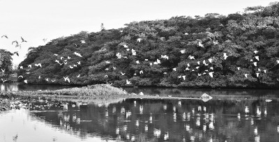 前些年,村委會在大榕樹生長的小島旁造了幾個新島,種上榕樹、簕竹,吸引鳥兒。果然,鳥兒們“遷居”過來了。尤其是一株株簕竹,引來好多小鳥築巢。簕竹枝幹比較硬,有相互交織的稠密刺叢,成了理想的搭巢地。小鳥們有了“新家”,大榕樹的“負擔”輕了不少,就能好好生長了。