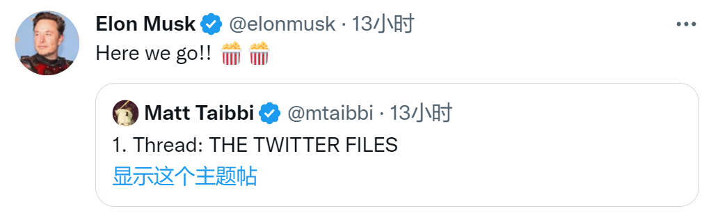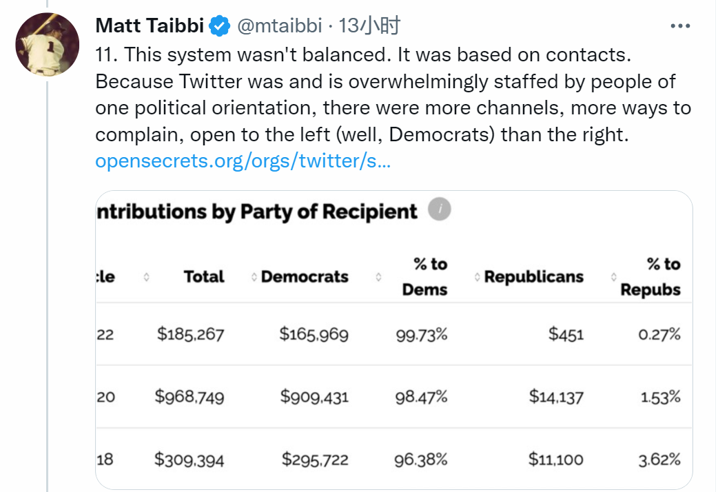在此背景下,當馬斯克完成推特收購併聲稱要揭露推特曾在亨特·拜登醜聞中的角色時,許多美國網民湧向馬斯克的推特賬號。當地時間12月2日,馬斯克在推特上轉發了美國作家馬特·泰比的推文,預告有關內幕將在馬特的賬號上以文字直播的形式逐條披露。
