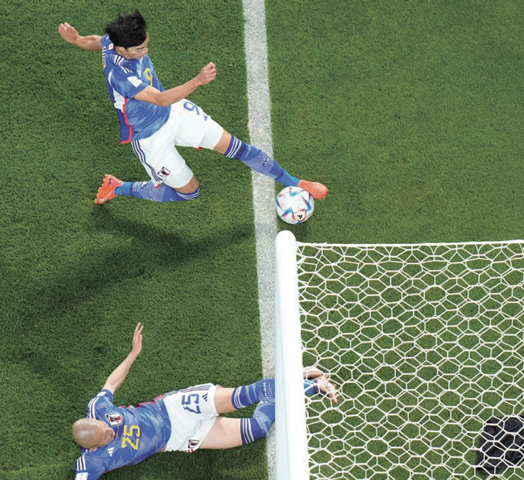日本隊殺入16強前先後戰勝德國隊與西班牙隊,同樣也是勝在高效。對陣德國隊時,日本隊的傳球為261次,德國隊820次;日本隊全場射門10次,德國隊25次;日本隊3次射在門框內,德國隊多達10次——結果日本隊攻入2球,德國隊敗北。對陣西班牙隊的數據更明顯:日本隊傳球224次,西班牙隊1070次;日本全場射門6次,西班牙隊14次;日本隊3次射正,而西班牙隊5次射正、6次被日本隊阻擋,結果日本隊取勝。