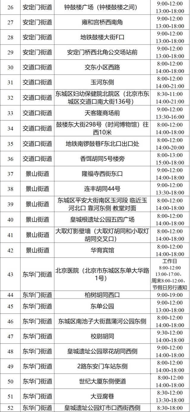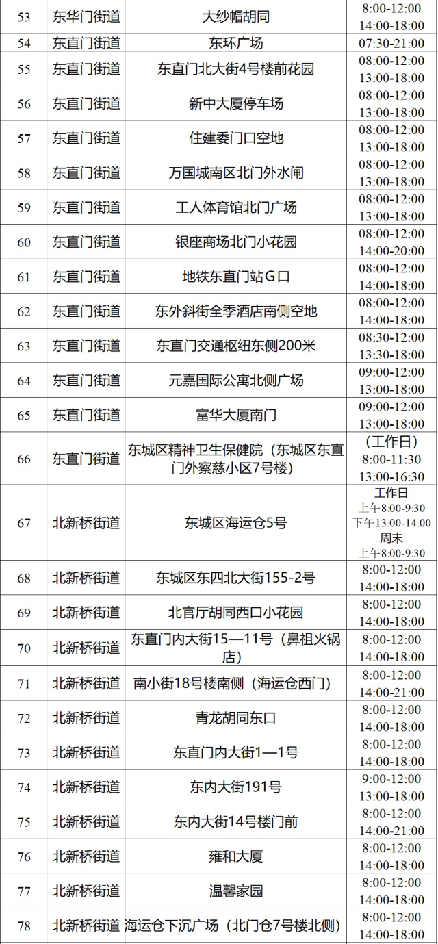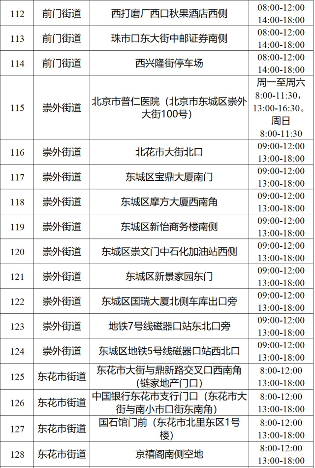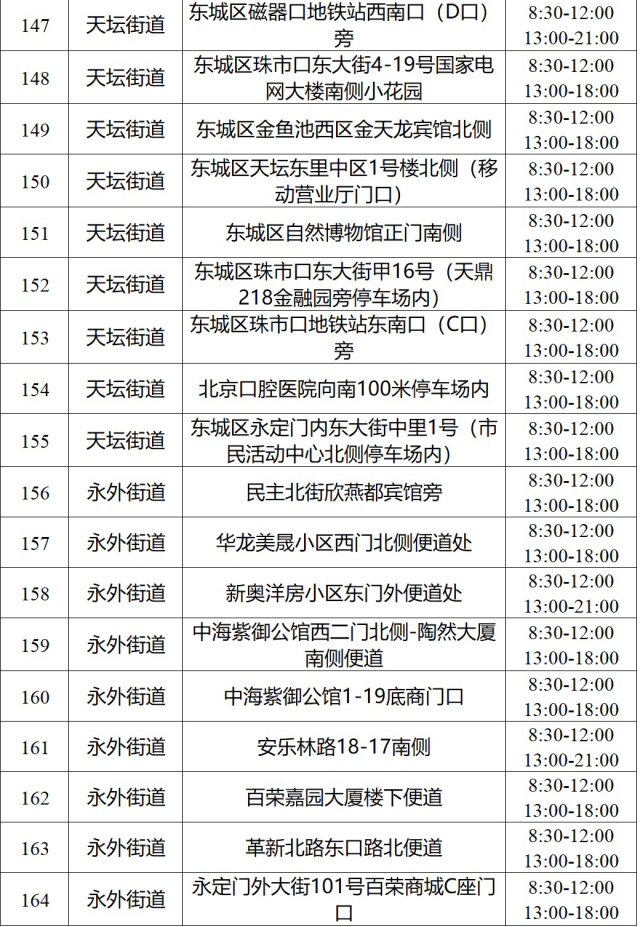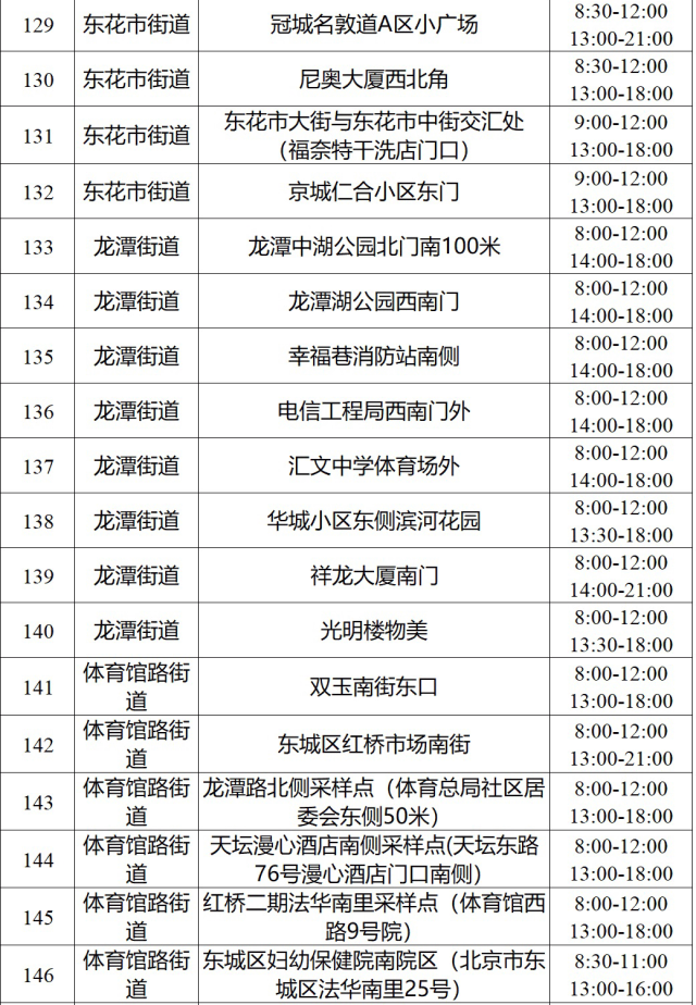 北京東城12月4日公佈了164個核酸檢測採樣點時間、地點——
