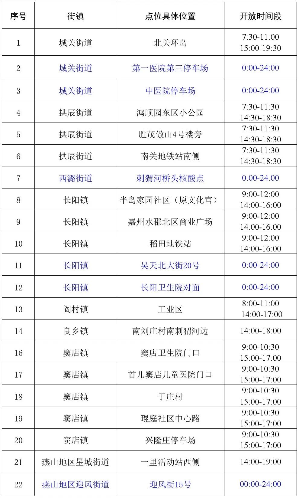 北京房山12月4日通報,當前本市疫情仍處於高位運行,社會面隱匿傳播風險持續存在,為滿足廣大市民就近進行核酸檢測的需求,房山區在城關街道、拱辰街道西潞街道、長陽鎮、竇店鎮等8個人口密集的街道鄉鎮,設置了22個社會面核酸採樣點 ,方便市民前往檢測——
