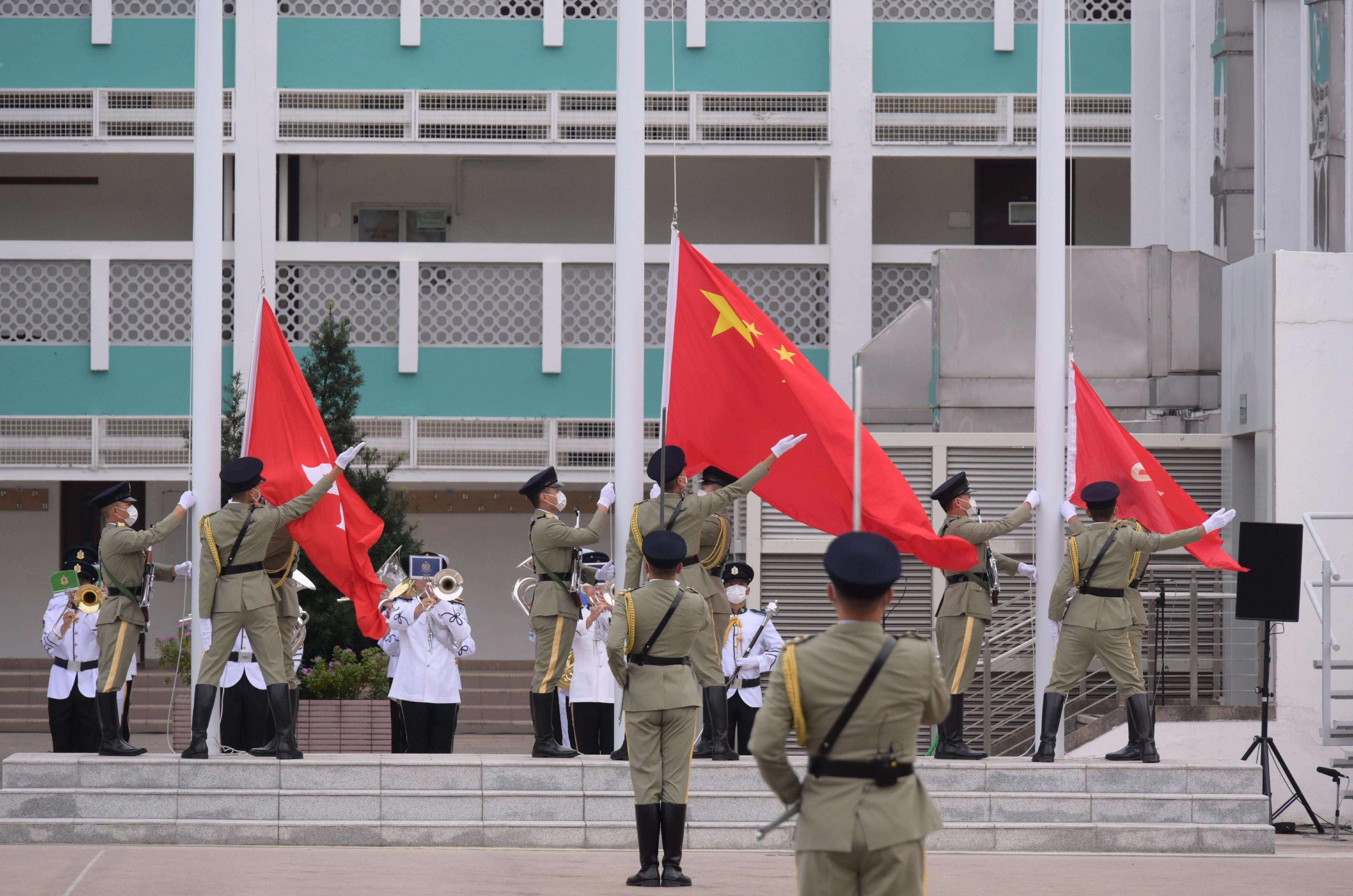 報道稱,參與升旗儀式的紀律部隊包括香港海關、政府飛行服務隊、懲教署、消防處、警務處,以及入境事務處。紀律部隊儀仗隊、護旗方隊以中式步操進場進行升旗儀式,現場奏唱國歌,香港特區政府飛行服務隊直升機在空中敬禮。
