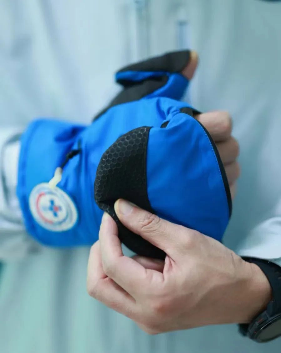 神舟十四號載人飛船計劃於夜間嚴寒天氣下返回東風着陸場,受地理條件以及氣候因素的影響,低温狀態給醫療救護人員開展各項工作帶來了極大困難。為確保各項醫療救治順暢精準,神舟醫療救護隊設計並裝備了“航天醫療專用低温防寒多功能手套”。