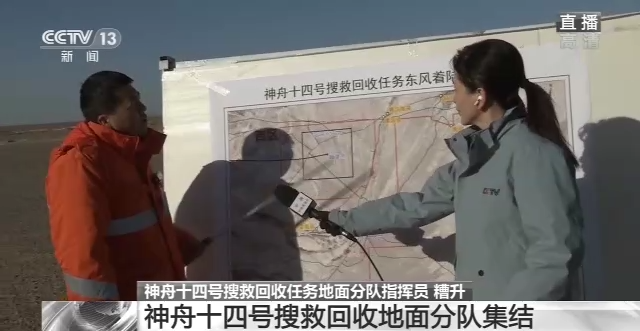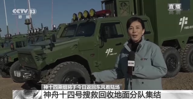 *總枱央視記者 劉潔:*這裏是搜救回收地面分隊的集結點。隨着神舟十四號返回時間的臨近,東風着陸場的搜救力量也做好了充分的準備。搜救力量是由多個分隊組成的,有空中分隊、地面分隊、機動分隊等,每個分隊都各有所長。他們先是自己分隊進行小系統的訓練,然後是空中和地面分隊的合練,最後是全系統全要素的綜合演練,可以説現在各個分隊間的配合已經是非常默契。地面分隊的主要任務就是對返回艙進行搜救,同時對航天員進行第一時間的醫監醫保處置,還有就是對返回艙後續的轉運等相關的工作。