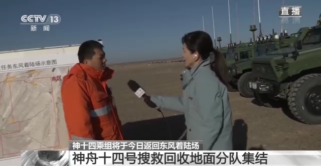 *總枱央視記者 劉潔:*通過工作人員的介紹,可以説現在地面分隊已經做好了準備,整裝待發,實現最可靠、最安全、最温暖的目標迎接航天員回家。