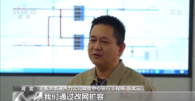 *衡水恆通熱力公司調度中心運行工程師 張文元:*我們通過改網擴容,把它納入我們集中供熱管網,冬季室温平均上升4到5℃。