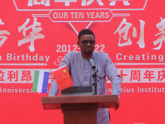塞基礎與高中教育部長代表拉迪波表示,塞大孔院克服疫情影響,舉辦盛大的十週年慶典實屬不易。中塞兩國在教育和文化交流方面,特別是漢語教學方面開展緊密合作。十年來,塞大孔院為中塞人民提供了了解兩國文化的平台,不斷促進兩國民眾相互理解,消除彼此誤解。希望今後越來越多的塞拉利昂人走進孔院,學習漢語,瞭解中國文化,為中塞友好交流作出努力。