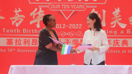 中國駐塞大使館臨時代辦李小勇通過視頻發表賀辭。他表示,十年前,在贛南師範大學大力支持下,孔子學院落户塞拉利昂大學,實現了從無到有的飛躍。十年間,孔院致力於提供優質中文教育,為當地民眾獻上一場場文化盛宴,成為介紹中國古老文化和現代文明的窗口。特別是中外教師、志願者克服各種困難挑戰,辛勤耕耘,默默堅守,展現了崇高師德,譜寫了人間大愛。展望未來,希望孔院繼續秉持“和而不同”的理念,不斷擴大朋友圈,為促進兩國人民友誼再譜新篇。