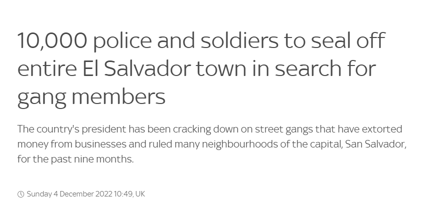 報道介紹,過去9個月布克爾政府一直在打擊該國的黑幫活動,這些街頭幫派從商家那裏掠取錢財,並控制了首都聖薩爾瓦多的多條街區。此次最新“打黑行動”中的索亞潘戈是該國最大城市之一,距首都以西僅13公里,長期以來是該國幫派活動的活躍中心。