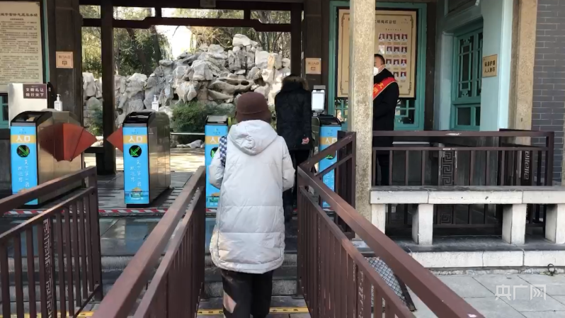 趵突泉公園門口,工作人員不再查驗健康碼和核酸證明,市民檢票後可直接入園(央廣網記者劉博倫攝)