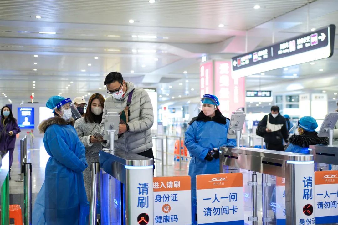 記者在杭州東站南進站口現場看到,旅客只需要亮“健康碼”就可以直接進站乘車,無需再掃“場所碼”,現場工作人員也不再查驗旅客行程卡。