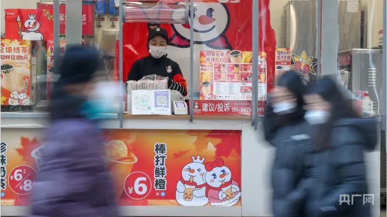 等待顧客上門的餐飲店店員(央廣網記者 賈海元 攝)