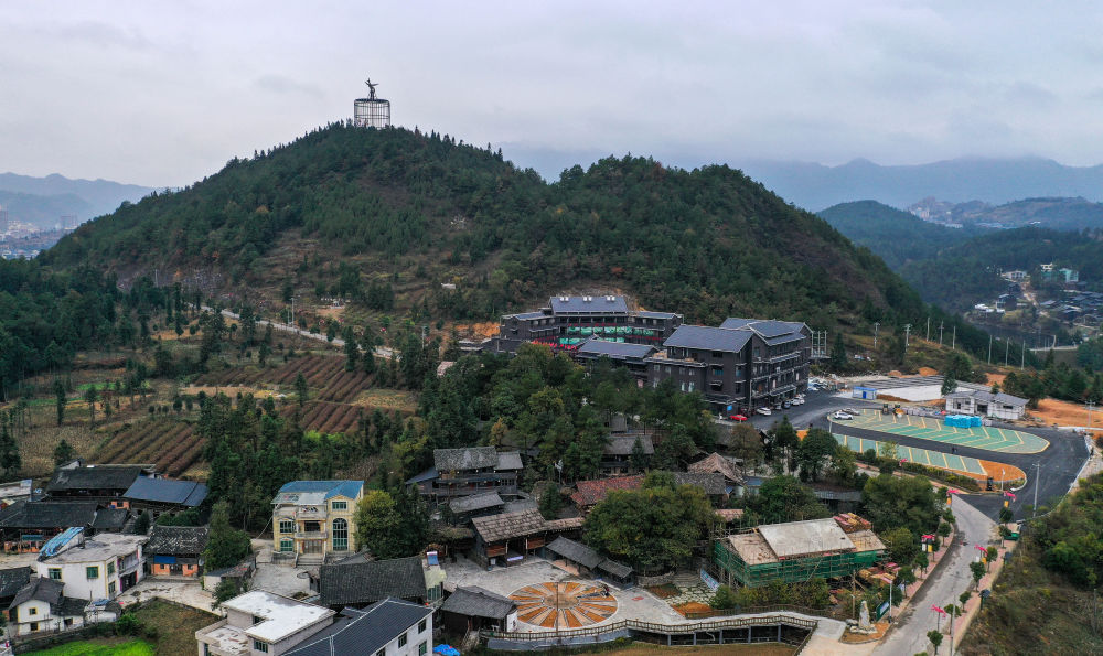 “銀匠村”依山而建,佔地面積50畝,共有房屋30多棟。遠遠望去,房屋高低起伏;遊走其中,亭台樓閣,別樣新穎。王國春説:“雖然名叫‘銀匠村’,但實際上是集合了多種非物質文化遺產的‘非遺村’。”
