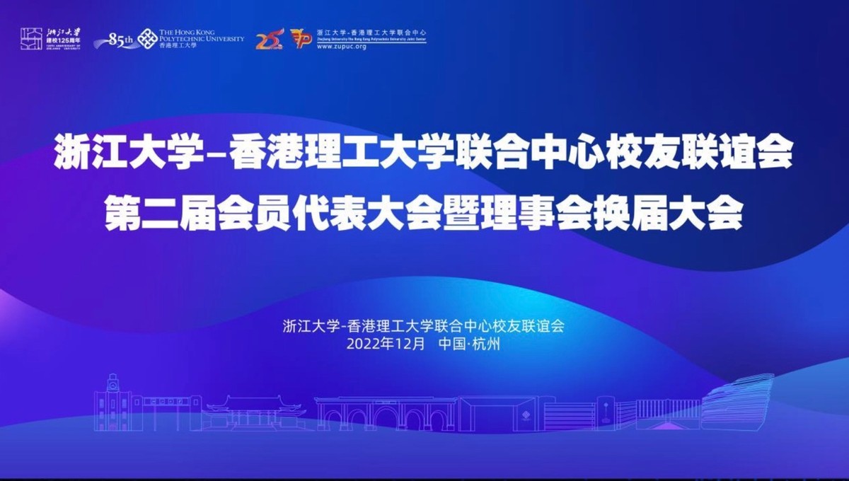 2022年12月3日,浙江大學-香港理工大學聯合中心校友會舉行第二屆會員代表大會,浙江大學管理學院黨委書記兼副院長朱原、香港理工大學內地發展處高級主任王詩華、第一屆校友會會長韓芳以及100餘名各屆校友代表參加了本次會議。
