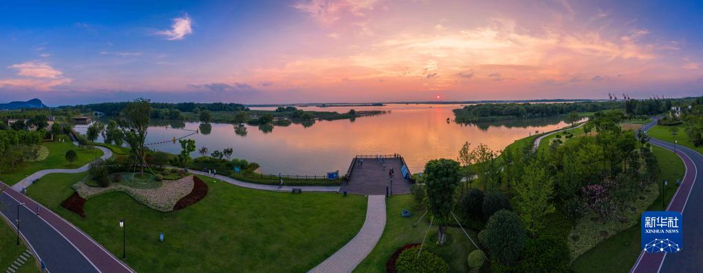 黨的二十大報告指出,“站在人與自然和諧共生的高度謀劃發展”。在安徽省馬鞍山市薛家窪生態園附近,上岸漁民陳蘭香和幾位工人正忙着清掃路面。2019年,馬鞍山市啓動了長江干支流漁民退捕轉產工作,一萬多名漁民退捕上岸,陳蘭香一家也告別了“水上漂”。