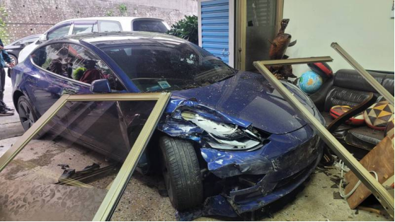 台媒:一輛特斯拉突然衝進基隆路邊民宅,“客廳全毀”