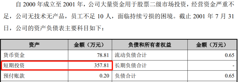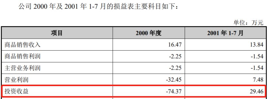 從時間點來看,北京宇通在2002年7月對外出讓航天環宇股權,這也就意味着在此之前航天環宇是北京宇通的控股子公司,進而是上市公司火箭股份的控股孫公司,應當被納入合併範圍。航天環宇在招股書中披露,該公司在2000年的投資收益為-74.37萬元,截止到2001年7月的短期投資餘額為357.81萬元。但是經查閲火箭股份披露的2000年和2001年年報,2000年利潤表中投資收益科目金額為零,2000年和2001年末短期投資客户餘額也為零,也即當時火箭股份的財務報表中並未包含航天環宇的財務數據。