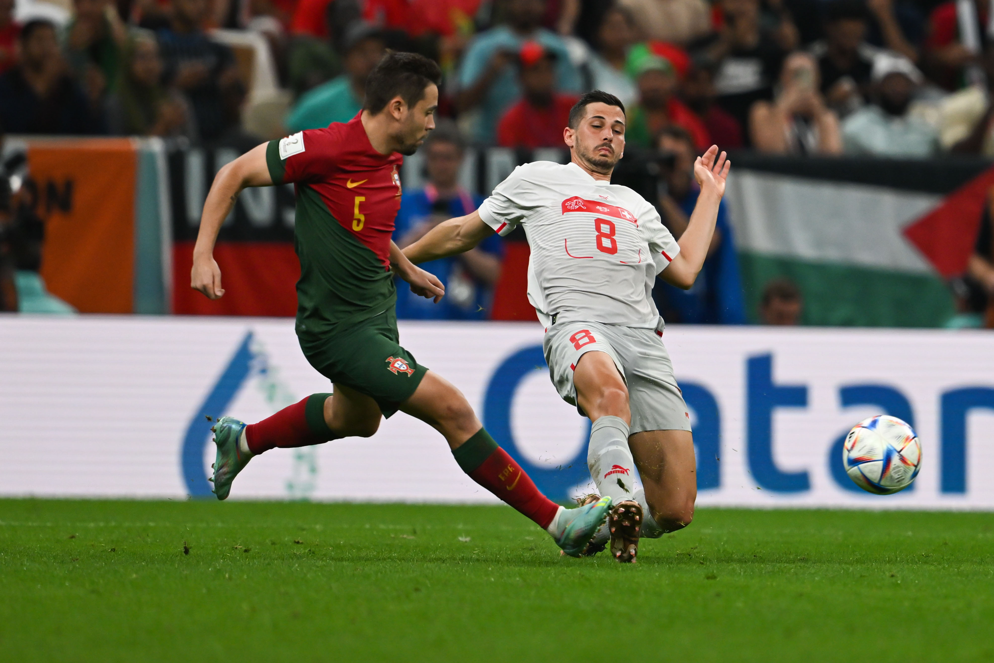 從比賽第51分鐘至66分鐘,兩隊在短短一刻鐘之內共打入四粒進球,其中三個屬於葡萄牙隊,兩個來自貢薩洛-拉莫斯,格雷羅也有一球入賬。阿坎吉利用角球機會為瑞士扳回一分,但已難以改變球隊被淘汰的命運。