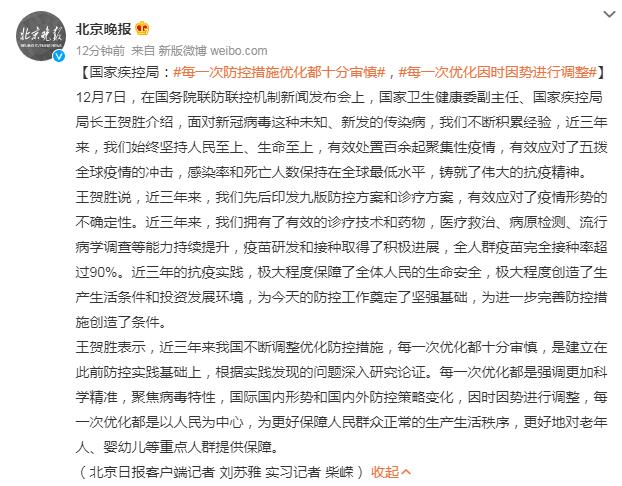 國家疾控局:每一次防控措施優化都十分審慎,每一次優化因時因勢進行調整