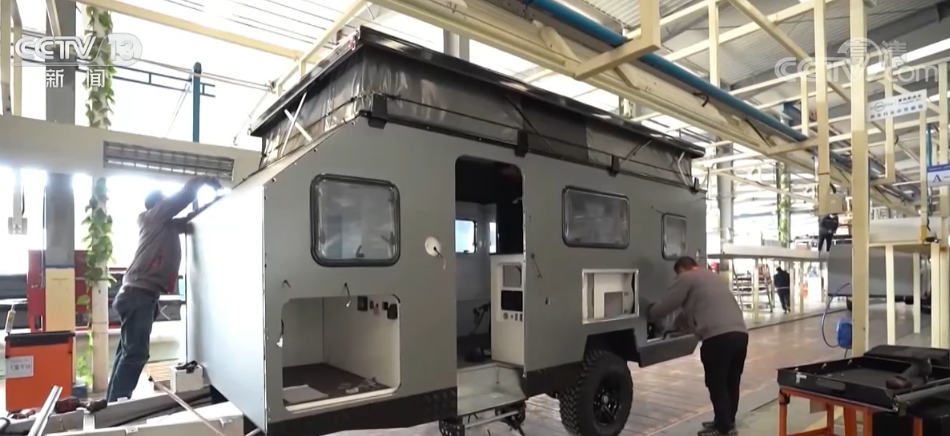 這幾天,在山東榮成新能源車輛公司總裝車間裏,工人們正在加緊趕製訂單,眼前組裝的這些拖掛式房車即將發往韓國等海外市場。