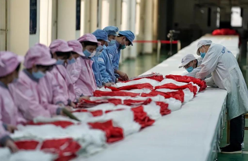 巨型降落傘選用典型環帆傘型,具有可靠性高、抗撕裂能力強的優點,這其中起重要作用的就是紅白相間的環和帆構成的傘衣。巨型降落傘能高效降低返回艙的下降速度,因其展開可獲得較大阻力面積,但傘衣初始狀態是一塊塊小型梯形綢布,需要工作人員將其拼縫起來。