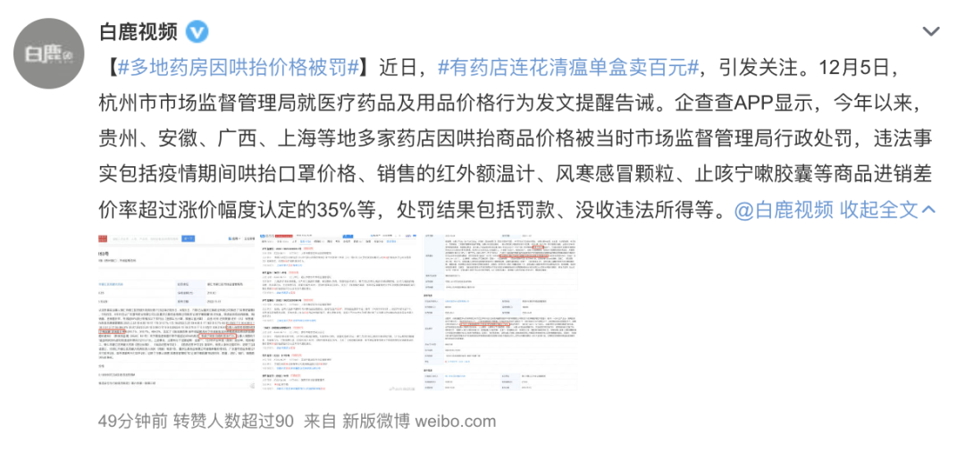 值得注意的是,今年以來,已有多家藥店因哄抬價格被處罰。