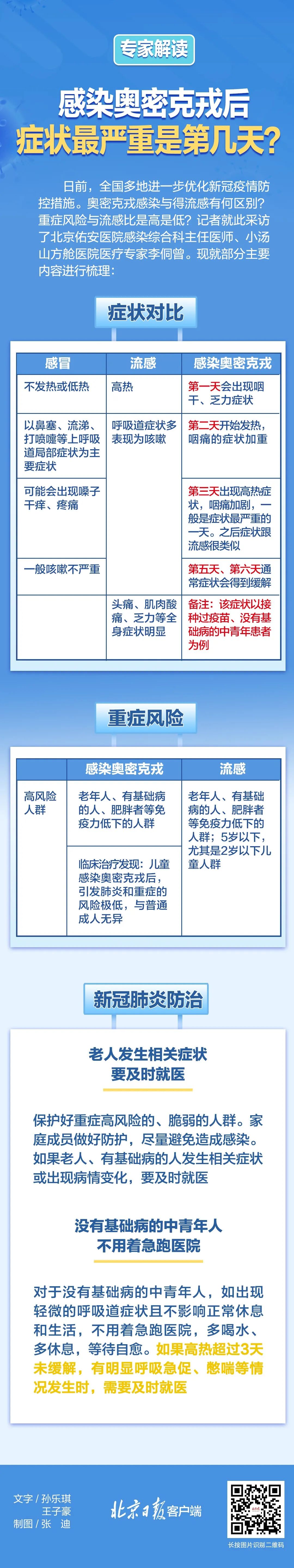 北京大學第一醫院感染科主任王貴強表示,當前疫情防控的重點是保護好老年人、有基礎疾病等重症高風險人羣 。接種疫苗,可以降低新冠病毒感染後的重症和死亡風險。王貴強呼籲,老年人儘快完成疫苗接種。