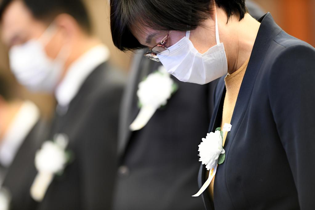 12月6日上午,中共中央、全國人大常委會、國務院、全國政協、中央軍委在北京人民大會堂隆重舉行江澤民同志追悼大會。舉國上下,各族人民沉痛悼念江澤民同志。這是在山東省青島市,幹部職工肅立默哀。新華社記者 李紫恆 攝