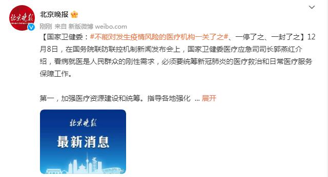 國家衞健委:不能對發生疫情風險的醫療機構一關了之、一停了之、一封了之