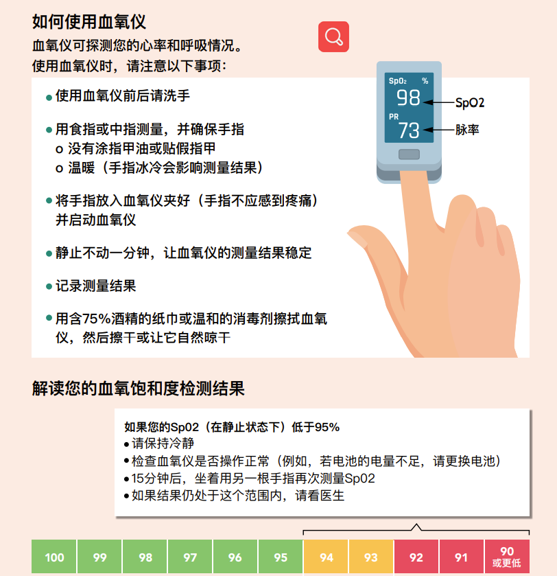 對於選擇在家隔離和康復的感染者,在保證自己能夠吃好,休息好的同時,還需要學會自己監測以下指標:症狀,體温,脈搏,氧飽和度。