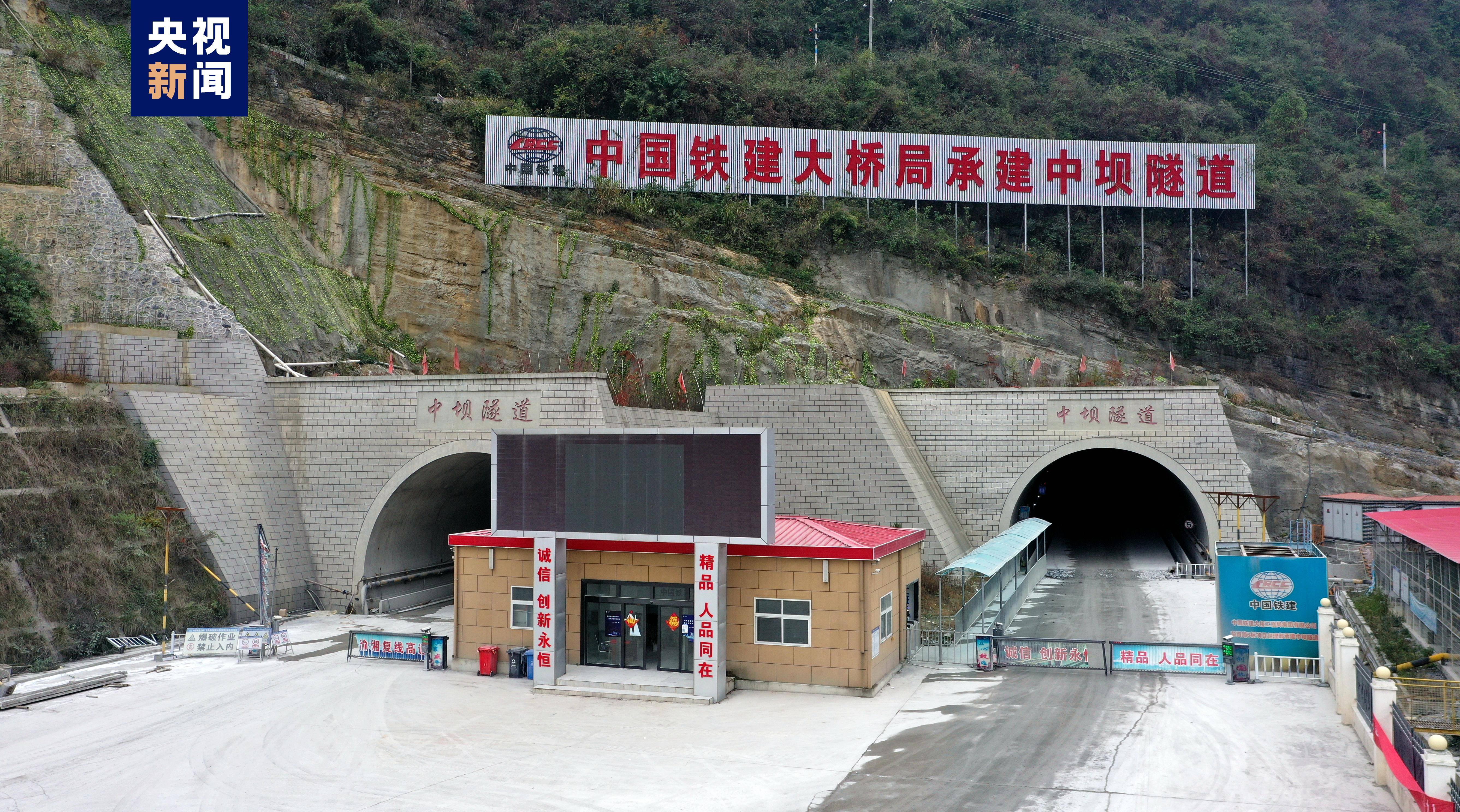據承建方中國鐵建大橋局介紹,中壩隧道全長4922米,為分離式雙洞隧道,隧道地址條件複雜,可溶岩段落佔總長的97.5%,存在危巖、岩溶、岩溶水等多種不良地質條件,整體施工難度大,安全風險高,工藝要求嚴,施工進程不可控。參建員工經過近800個日夜奮戰,先後克服用水匱乏、徵地拆遷、高壓改遷、熔岩突泥等一系列困難,提前150天實現雙洞貫通。