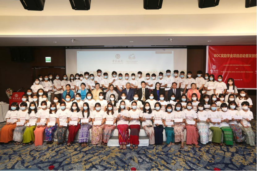 中國銀行獎助學金項目計劃每年向仰光大學100名大學生提供獎助學金,幫助他們完成學業。