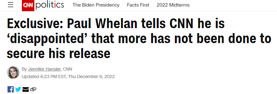 關於保羅·惠蘭,據媒體此前介紹,他曾在美國海軍陸戰隊服役,持有美國、英國、加拿大和愛爾蘭護照。2018年12月28日他在俄羅斯首都莫斯科一家酒店被捕。當時,他與一名俄羅斯熟人見面,對方給他一個優盤。惠蘭説,他赴俄參加朋友婚禮,以為優盤存有度假照片。俄羅斯聯邦安全局指控惠蘭從事間諜活動,説優盤內有機密信息,惠蘭“被抓現行”。莫斯科一家法院2020年6月裁定惠蘭間諜罪名成立,判處他16年監禁。惠蘭隨後決定不上訴,期望經由美俄“換囚”獲釋。