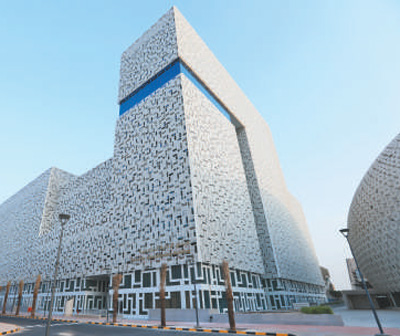 在科威特大學城中央行政樓的開放式中庭漫步,透過玻璃幕牆和阿拉伯雕花窗格,烈日變得温和而靈動。不遠處,仍在建設中的大學城圖書館採用了類似設計風格,白色雕花窗格以阿拉伯文“飛鳥”為靈感設計,組合成片,像是為建築物披上了一層優雅的薄紗。